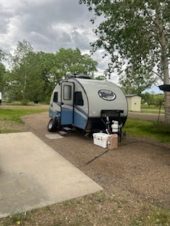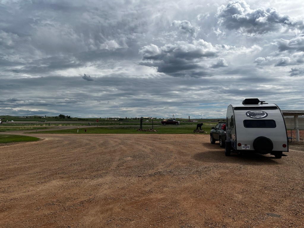 More pronghorn on this drive and a lot of open prairie, farms, and cattle. A phone call came in about 10 minutes before we were to arrive at the campground (it was about 17:30) and it was the gate person at Downstream just checking in on us and getting an approximate ETA. When we pulled up, we were greeted by your stereotypical Montana guy. Big cowboy hat. Boots. He was very nice and told us about the dinosaur museum down the road (already closed for the evening, bummer). Our campsite was great. It was a nice shaded, level, roomy, pull-through site. Short walk to the shower house and close to the river. We were there early enough that we actually were able to relax, take the girls (our dogs) for a mile walk along the path by the river, cook and enjoy a beer before bed. Our signal was weak so unfortunately, we couldn’t watch “Canadian Bacon” that evening as we prepared for Canada. We had wished we had more time and could have spent another night. But we needed to keep moving on.