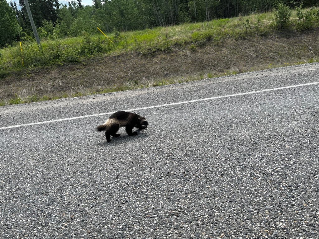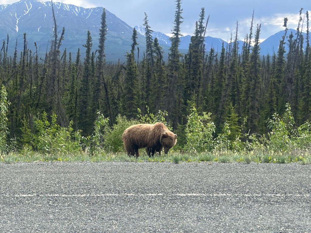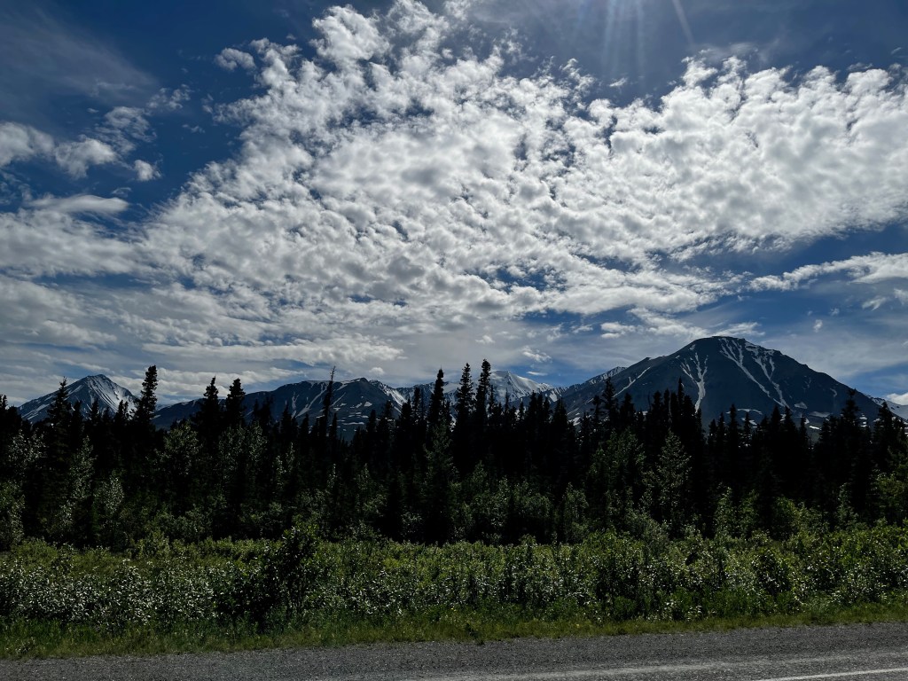 This was going to be another long day as we were headed to Tok, AK. This section of highway was also noted as being rougher than the rest so we knew that it would take extra time. Crossing back into the US at Alcan went relatively smooth, but they took our clementines that we had purchased in the US at a Kroger (so it was fruit we purchased in the US that we were taking back into the US that Canadian Customs knew we had and did not take but, whatever). Saying that this section of highway was rough is a bit of an understatement. But we made it.