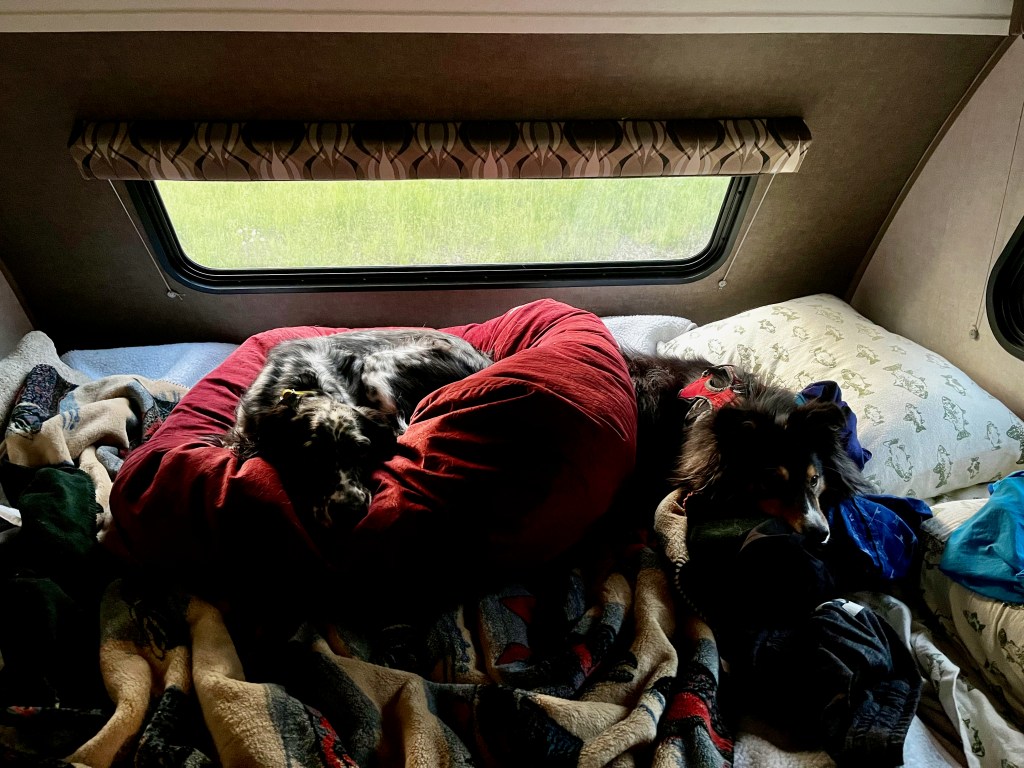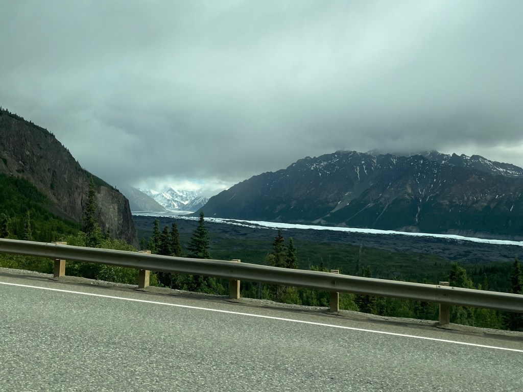 After a nice morning run, we started to head towards our new home. We stopped at a stream on the way and caught a couple of gorgeous Grayling. What an excellent way to be welcomed to our new home state! We met a nice guy with a young Shetland Sheepdog, Riley, that looked just like Trix when she was young. The rest of the drive was relatively uneventful for the day, but the section of highway closer to the valley was full of tight turns and sharp cliffs. But talk about amazing views! We were able to see a glacier that is about an hour from our house. Wow!