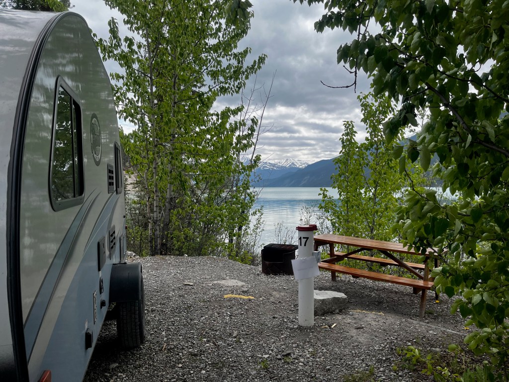 The campground had filled up a bit since we had dropped the camper, but it was relatively quiet still and our campsite was right on Muncho Lake so not too bad. We had time to relax that evening. But knew tomorrow held the longest drive of the trip from Muncho Lake, BC to Whitehorse, YT.